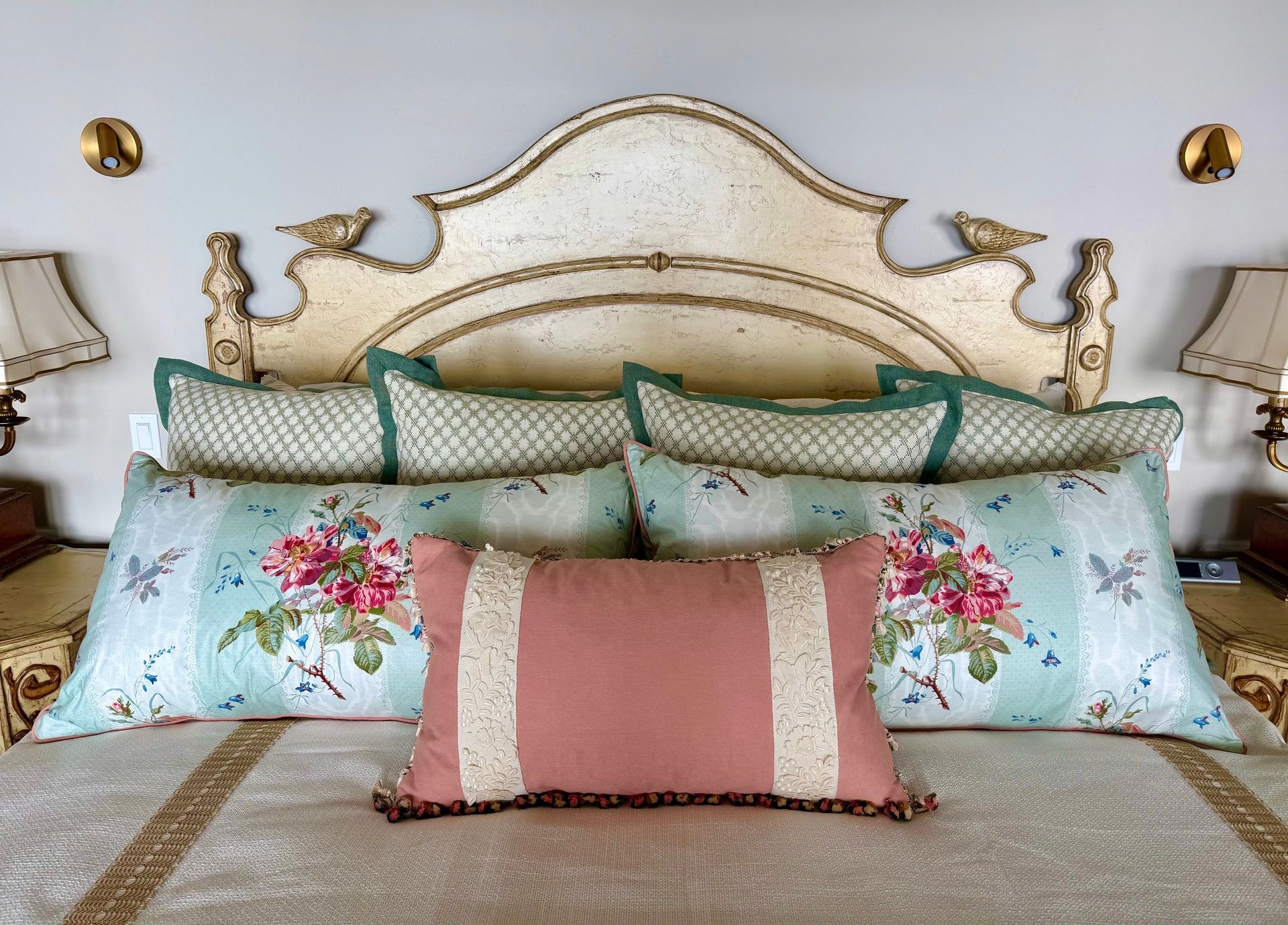 Embroidered trims and personally selected fabrics are what makes custom bedding so wonderful. We would love to help you put together a bedding set that suits your style. Our team is here to help you with selecting the type of bedding and the perfect fit for your room.