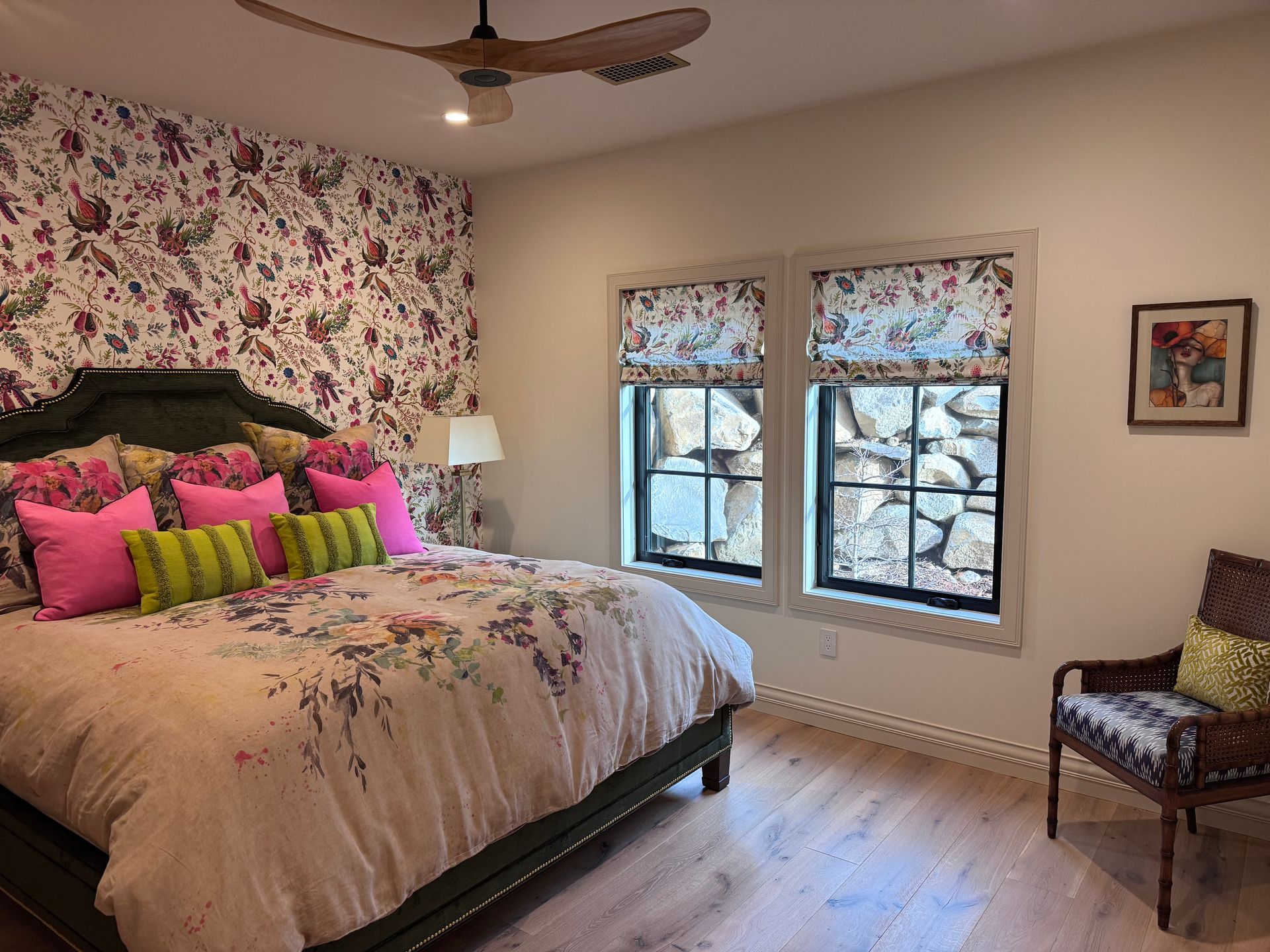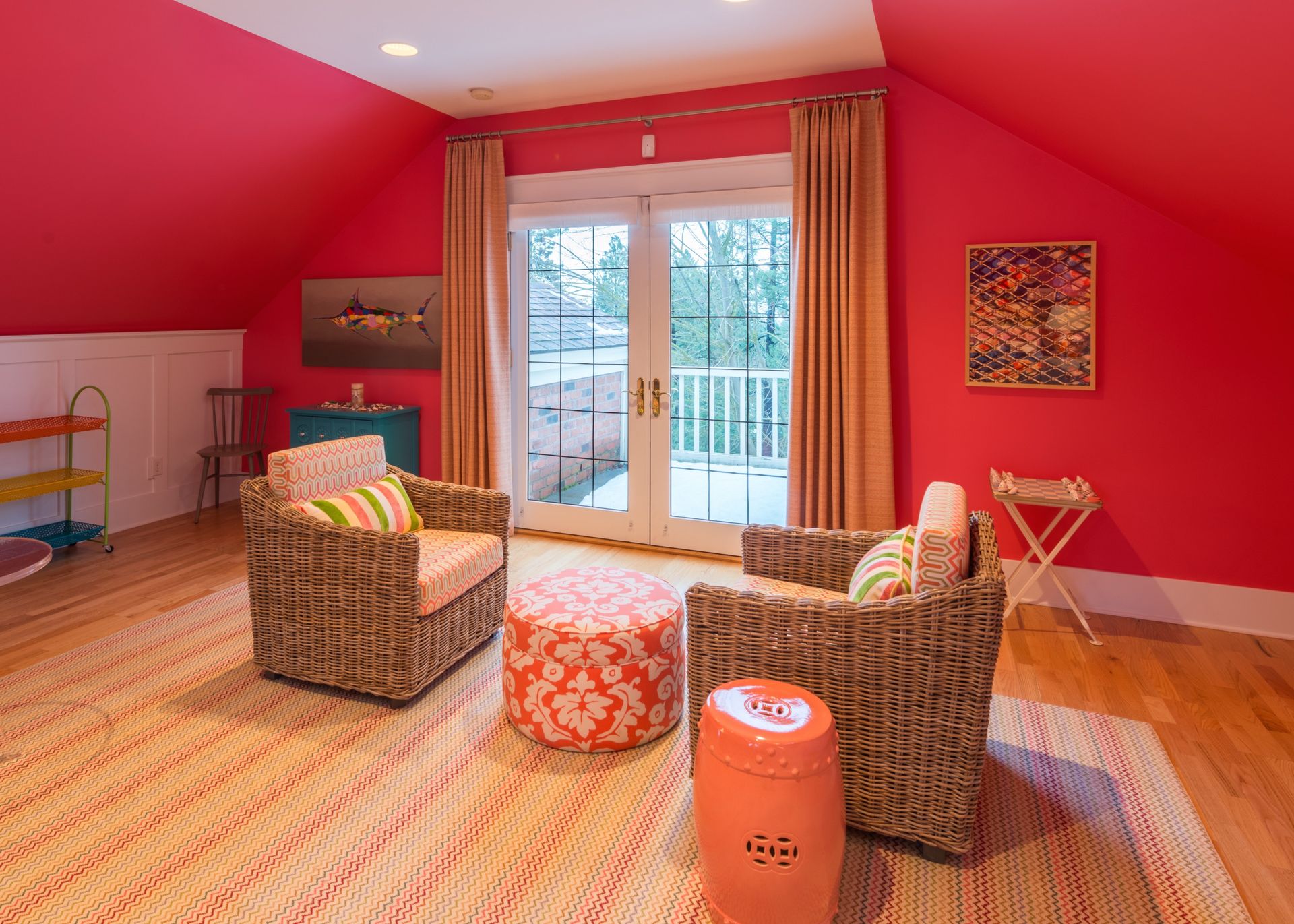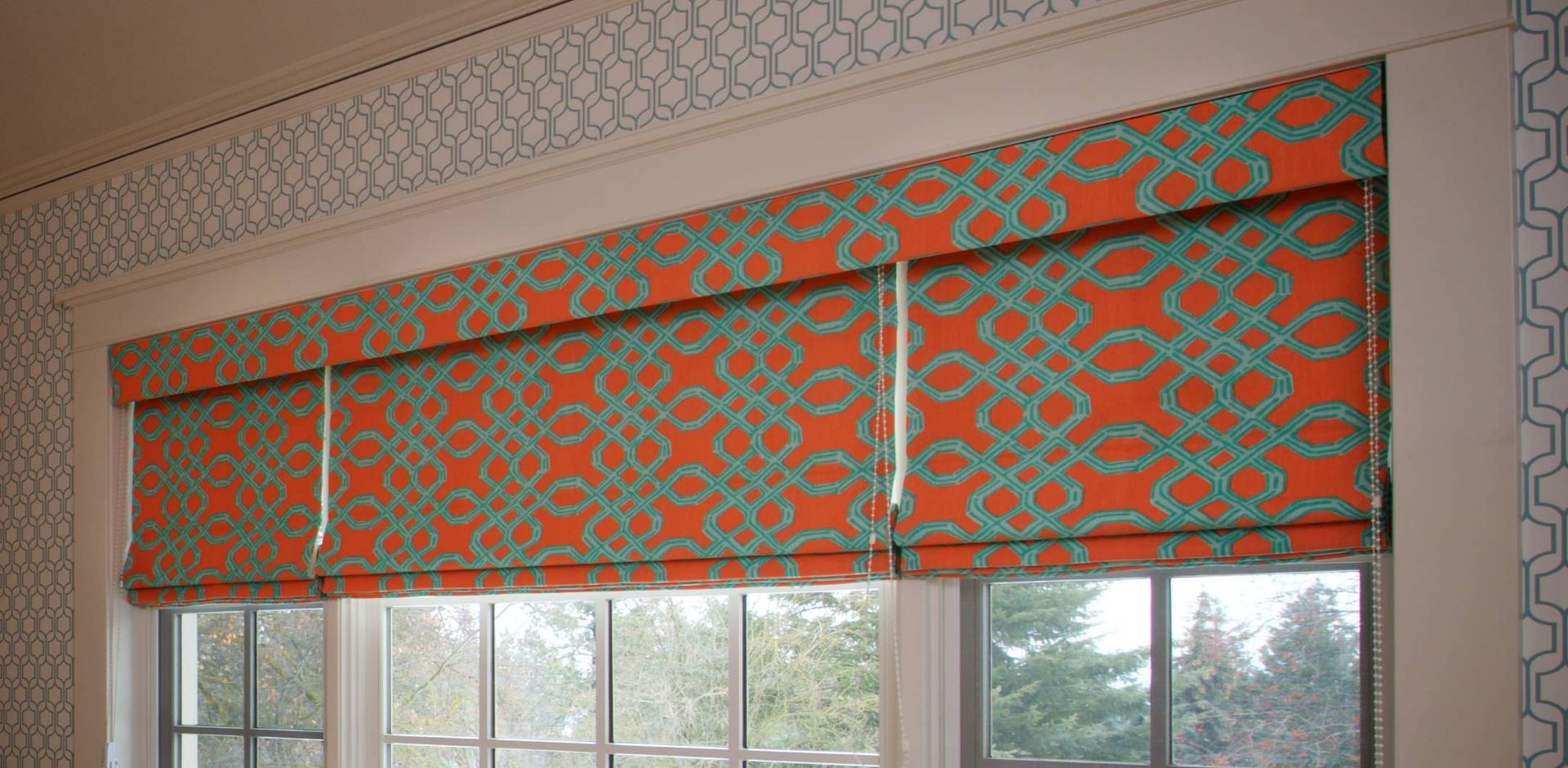 Custom pIllows, cushions, ottoman and draperies by Fabric Works. Room Design by Cinda Scadden (Portland Oregon).