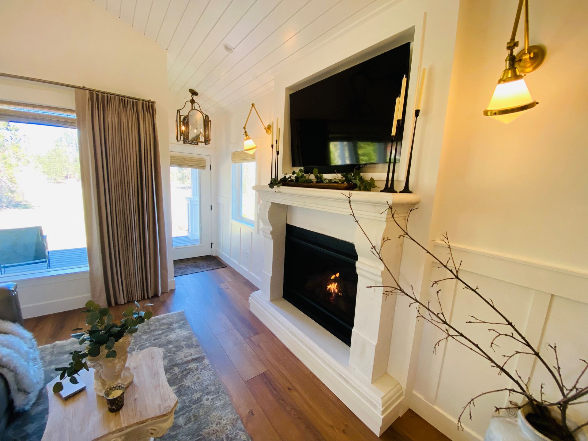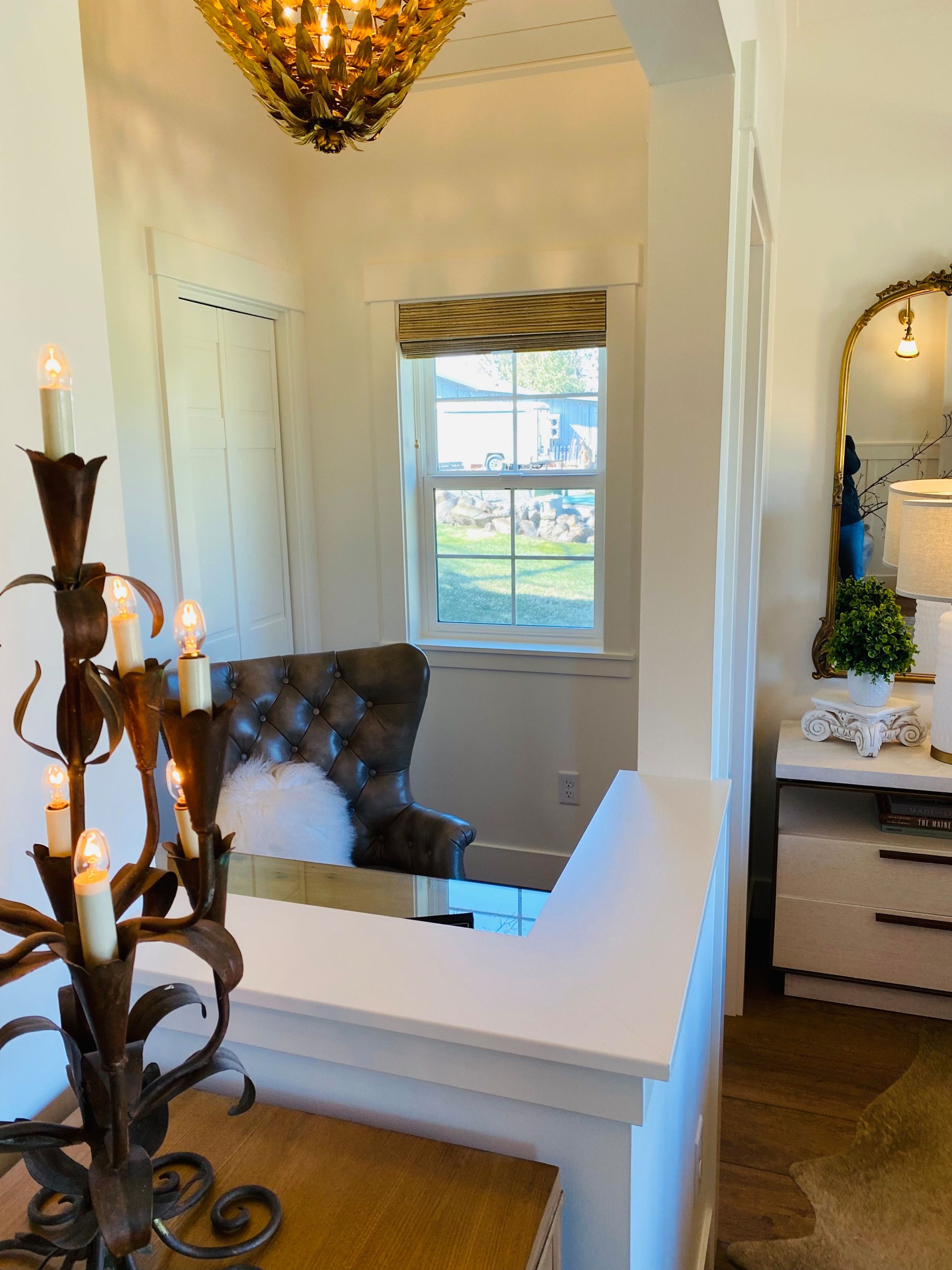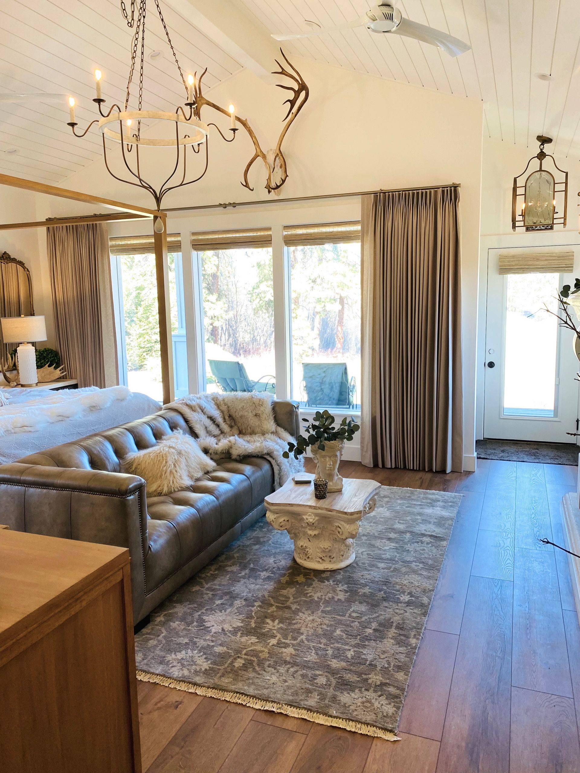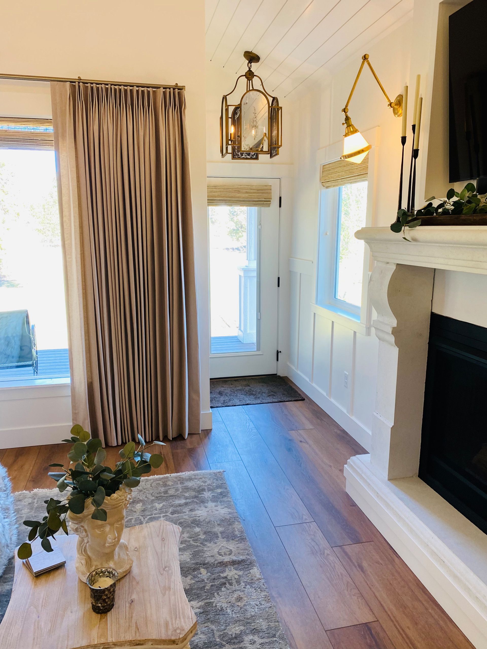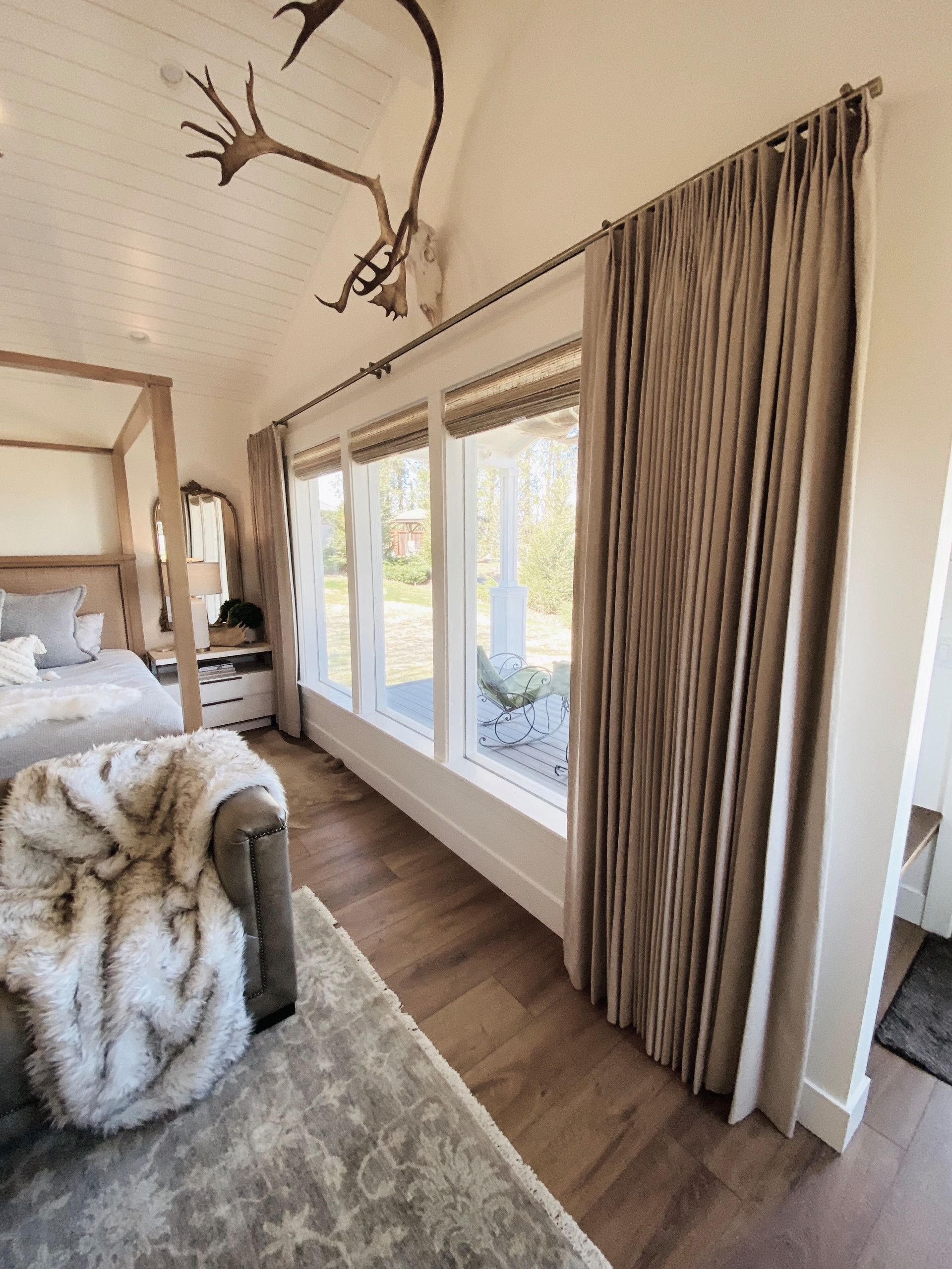 Linen draperies with Hunter Douglas Woven Wood Shades