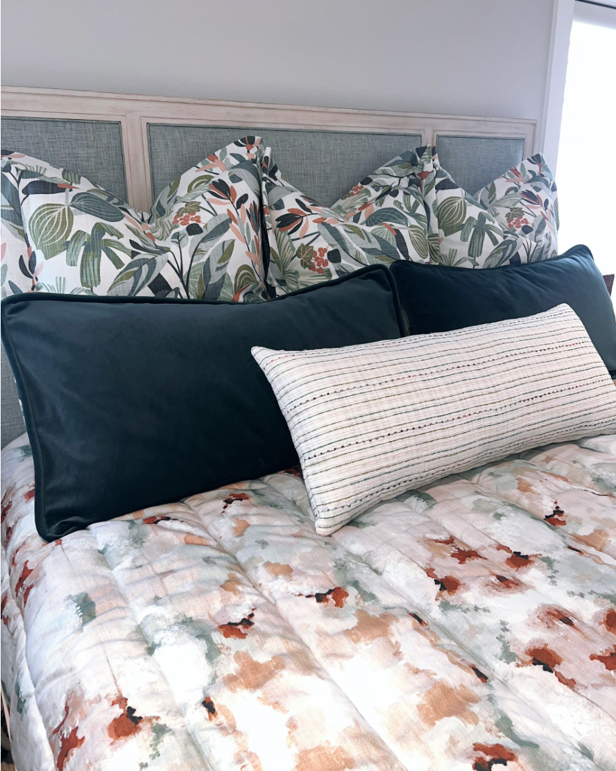 Custom bedding is what dreams are made of. Unlike mass-produced options, custom pieces are tailored to your preferred materials, firmness, and dimensions, creating a room designed just for you. Choose from a variety of fabrics, colors, and patterns to perfectly compliment your space. Layer in custom-made decorative pillows and coordinating window panels to pull together your entire look.